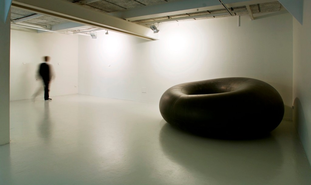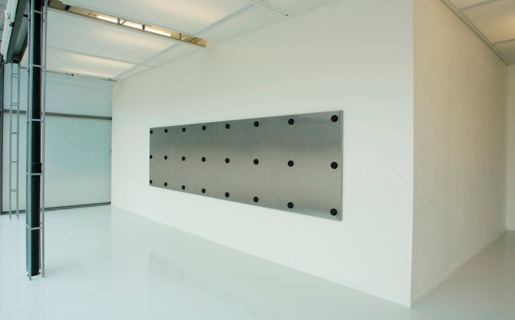 Konkav gipsobjekt; 8 stk à3xØ12cm montert i ansiktshøyde
