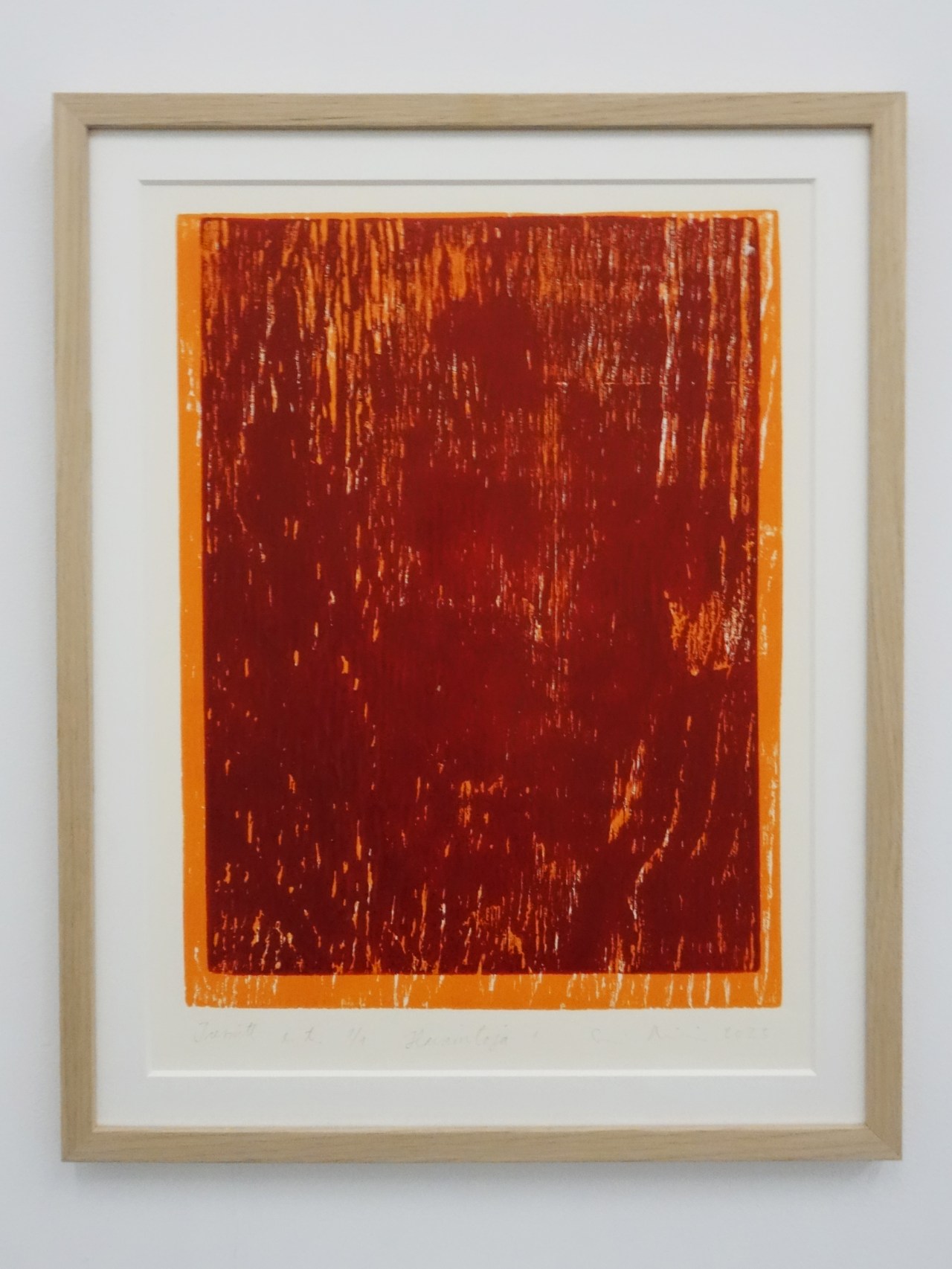 Havaintoja 1 2023, tresnitt eget trykk 1/1 50 x 38 cm i eikeramme